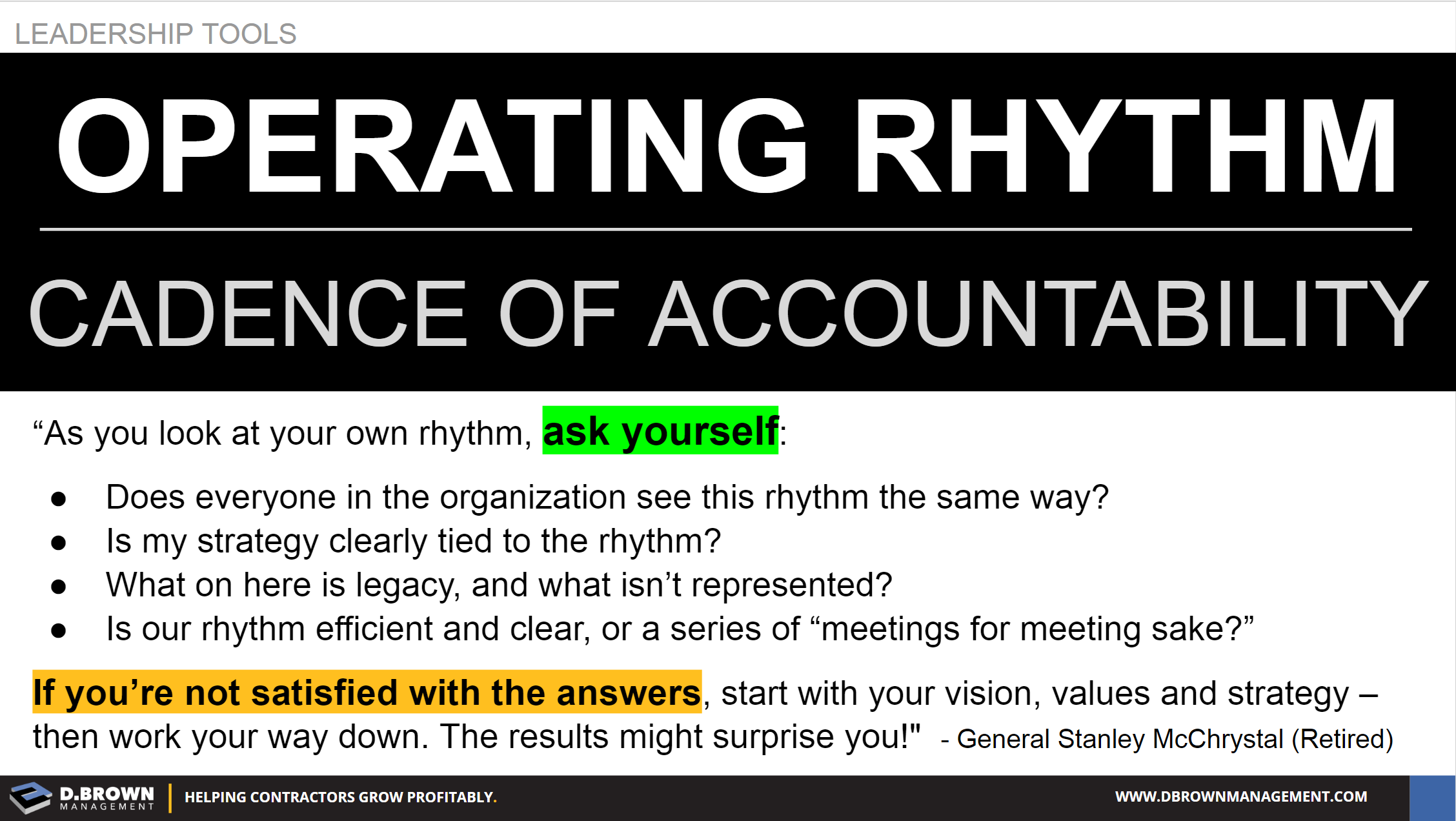 For a contractor to grow sustainably they need to move from “Doing Things” and ad-hoc communications into effectively integrated Operating Rhythms.
