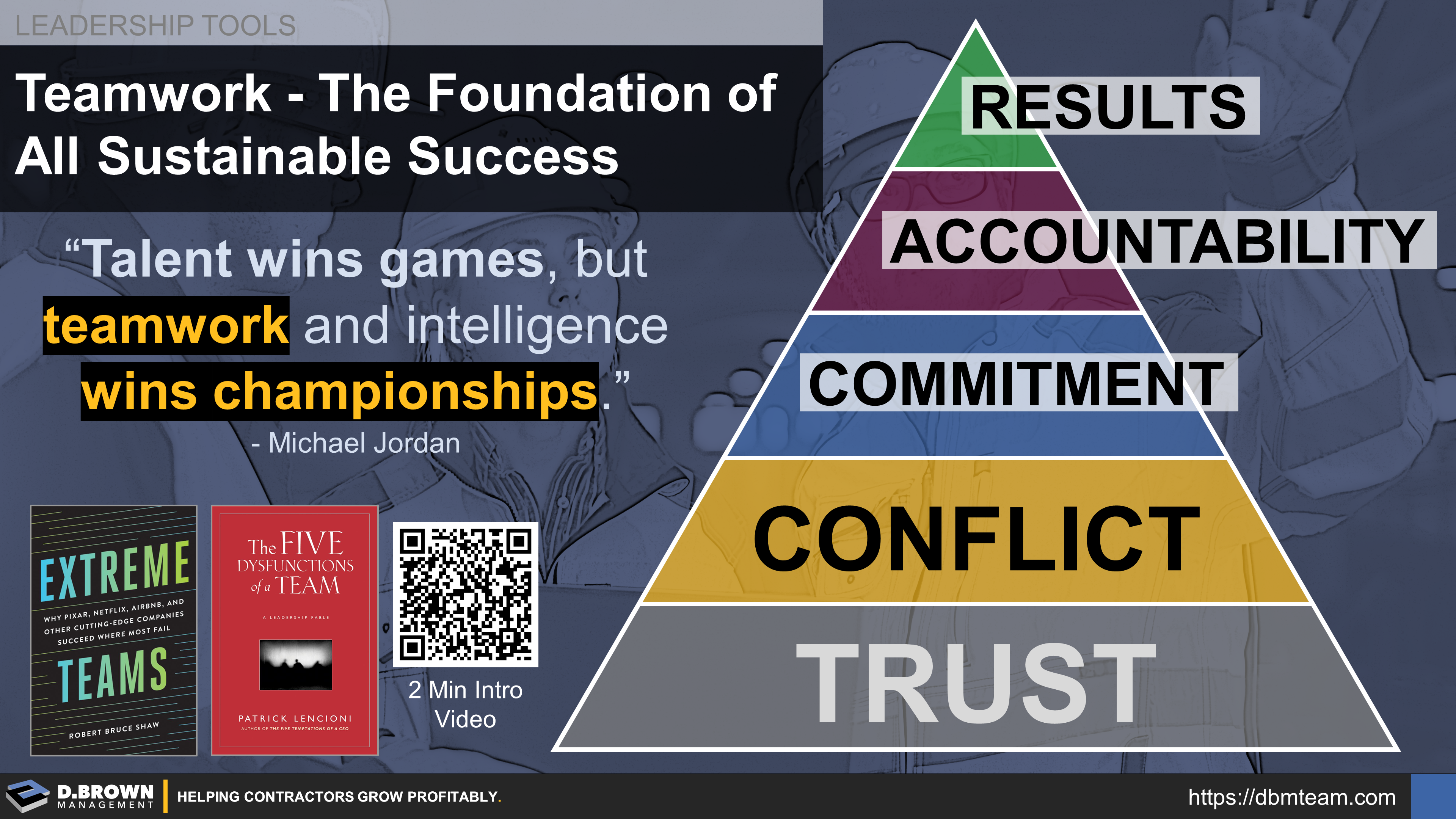 When a contractor is just starting out and the projects are small, the focus on tasks and tools consumes nearly every minute of the leader’s day. All other elements of the pyramid are present and necessary, but a lot less intentionally proactive time is spent on them.