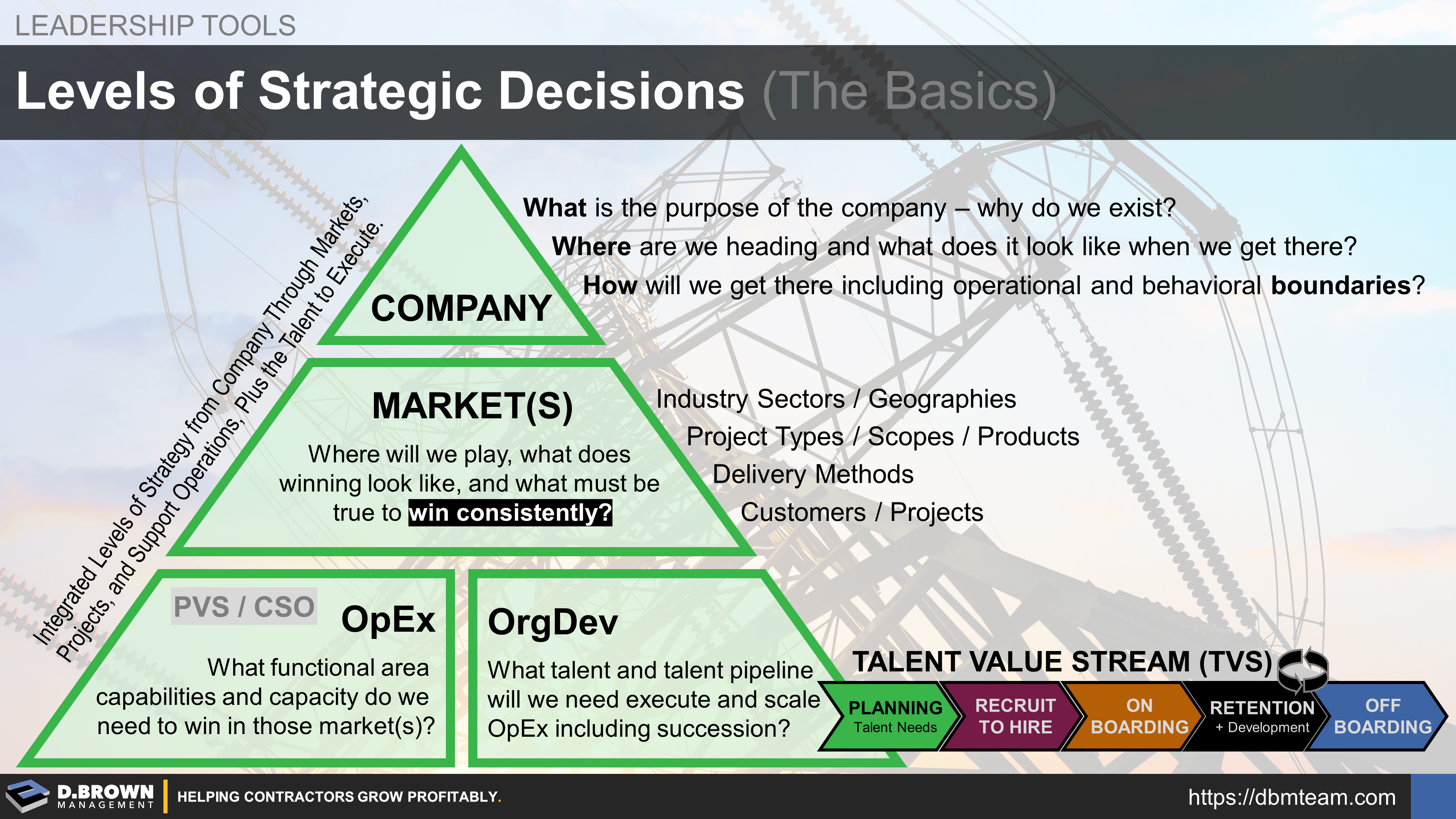 D. Brown Management has worked with hundreds of contractors across the United States and brings that experience to the table when helping teams work through these choices. Please contact us to learn more about our approach to strategy from brainstorming to decision making to aligning the team around execution.