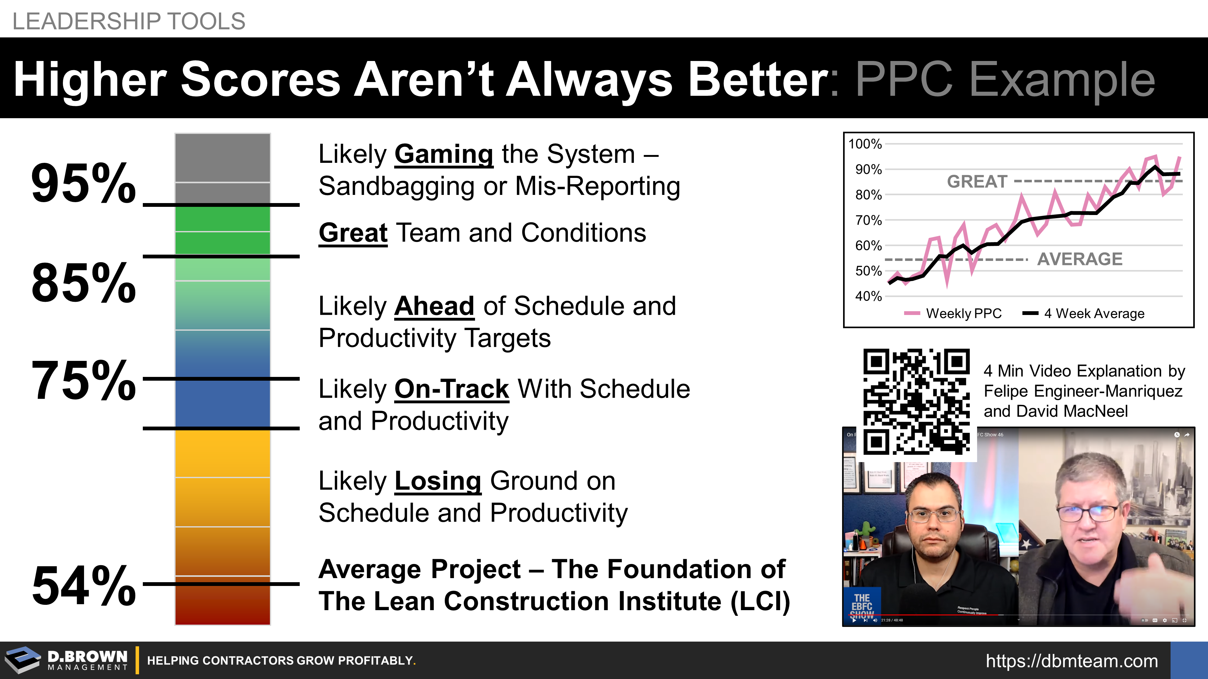 David MacNeel from On Point Lean describes that higher scores aren't always better in this interview with Felipe Engineer-Manriquez on the EBFC (Easier, Better, for Construction) Show (4 minutes starting at 0:20:00)