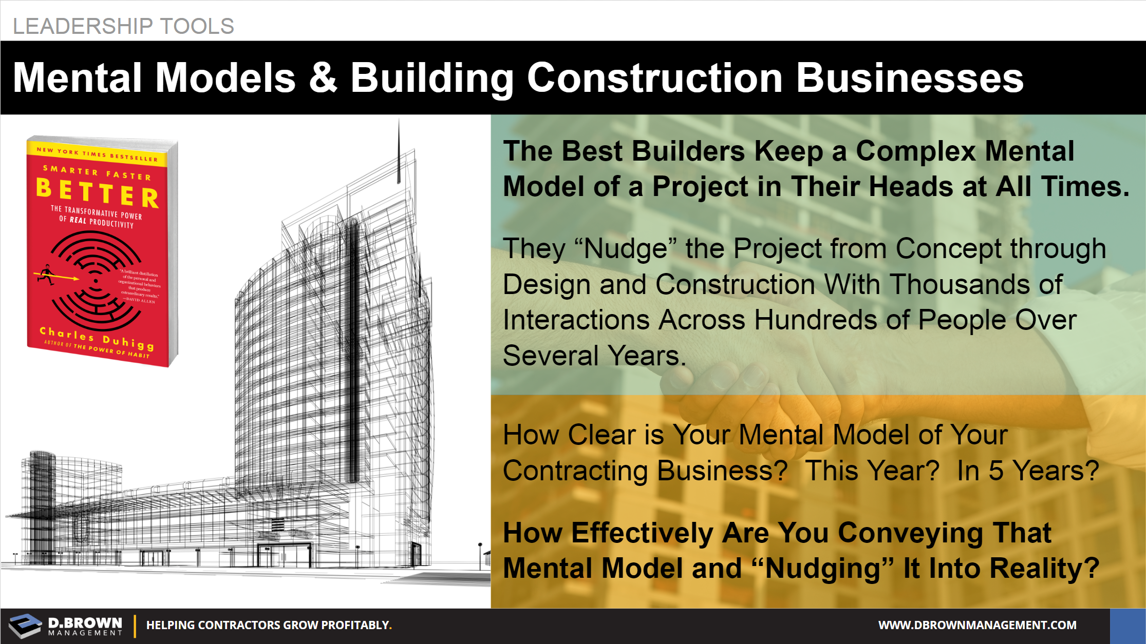 Building a construction business is no different; just more complex and (hopefully) continuing on for many decades. It is critical for leaders at all levels within a contracting business to develop detailed mental models of the business as it operates today and as they want it to operate in the future.
