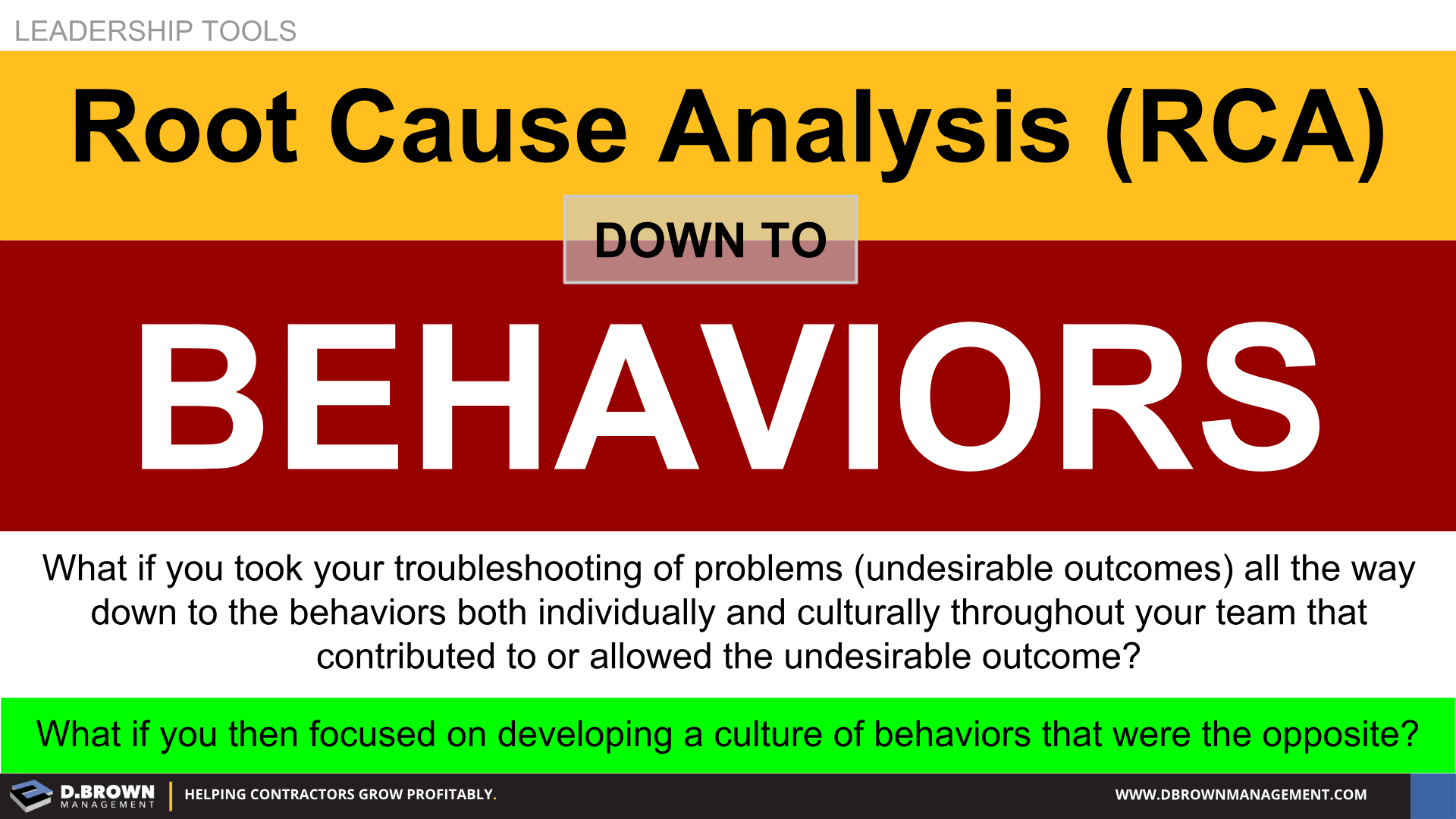 As you are doing your own Root Cause Analysis look at the underlying behaviors that allowed the problem to happen or heavily contributed to it.