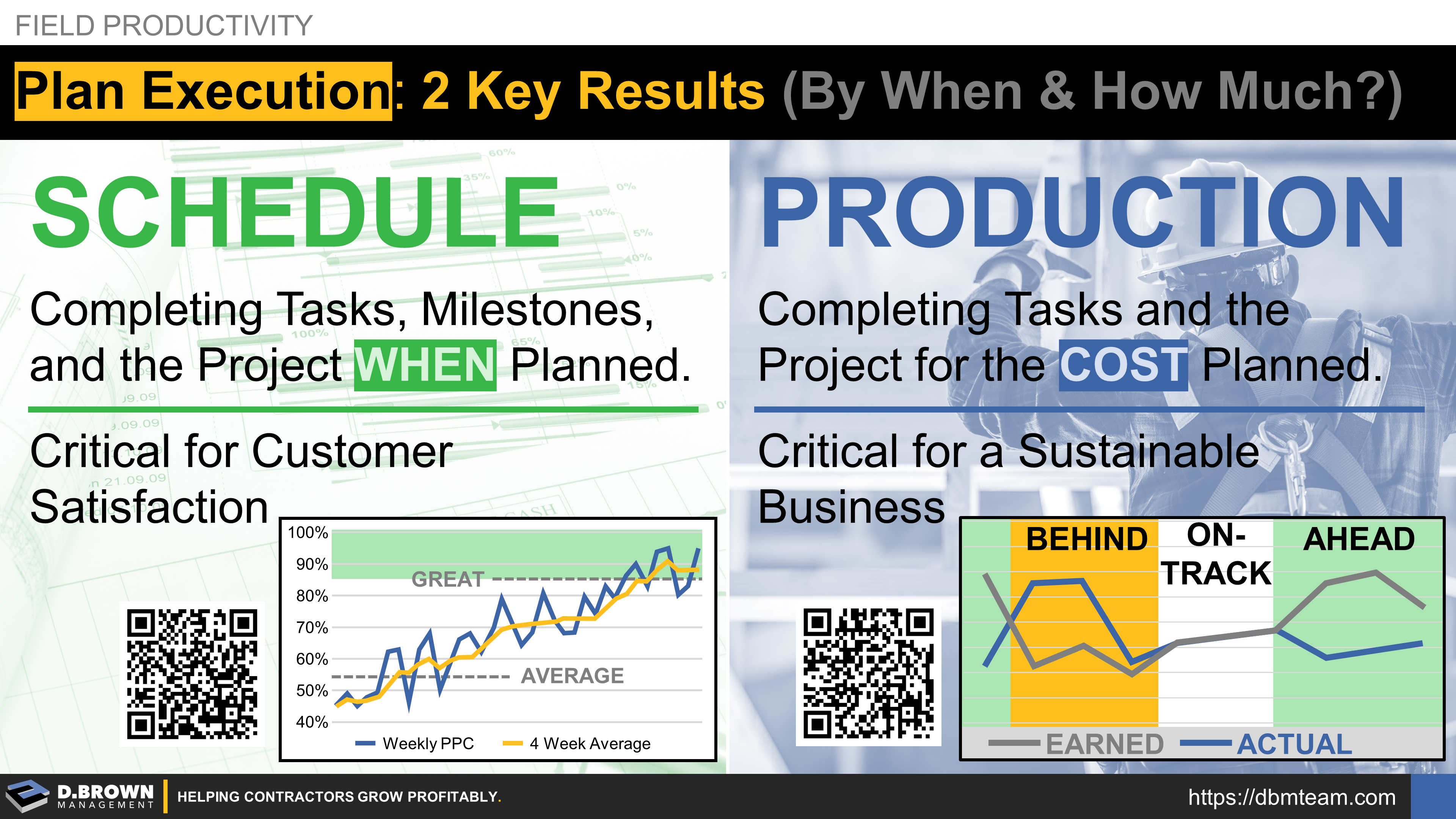 Field Productivity: Plan Execution with two key results. By when and how much. Schedule and Production.