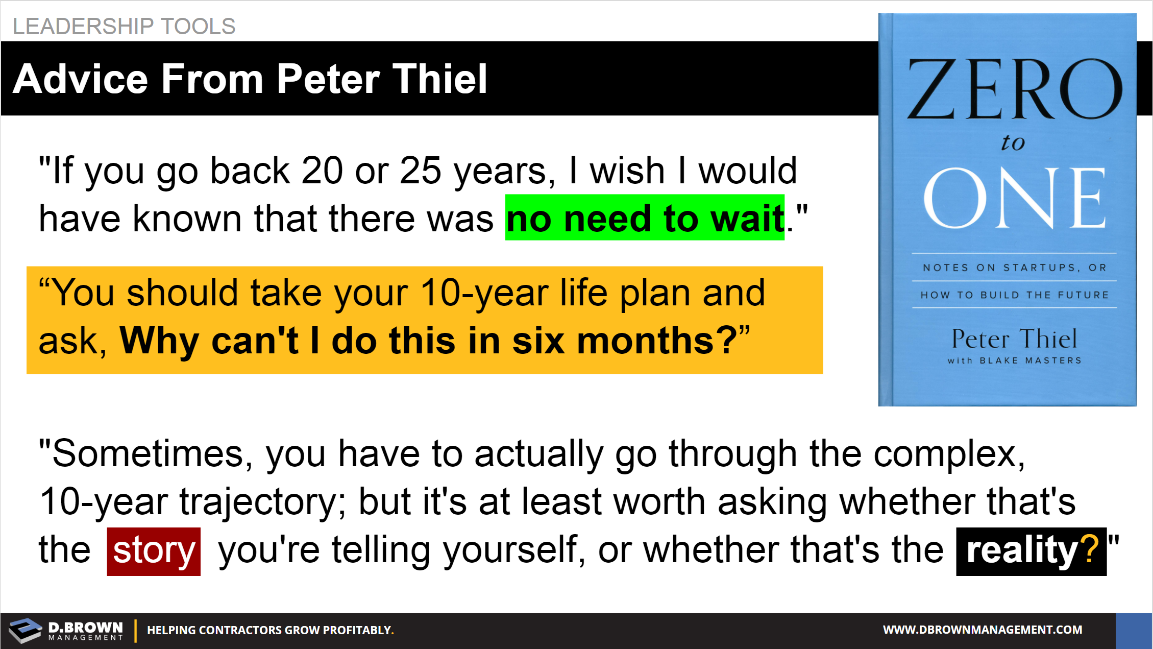 Peter Thiel challenges some assumptions about how long things should take to innovate in the book Zero to One.