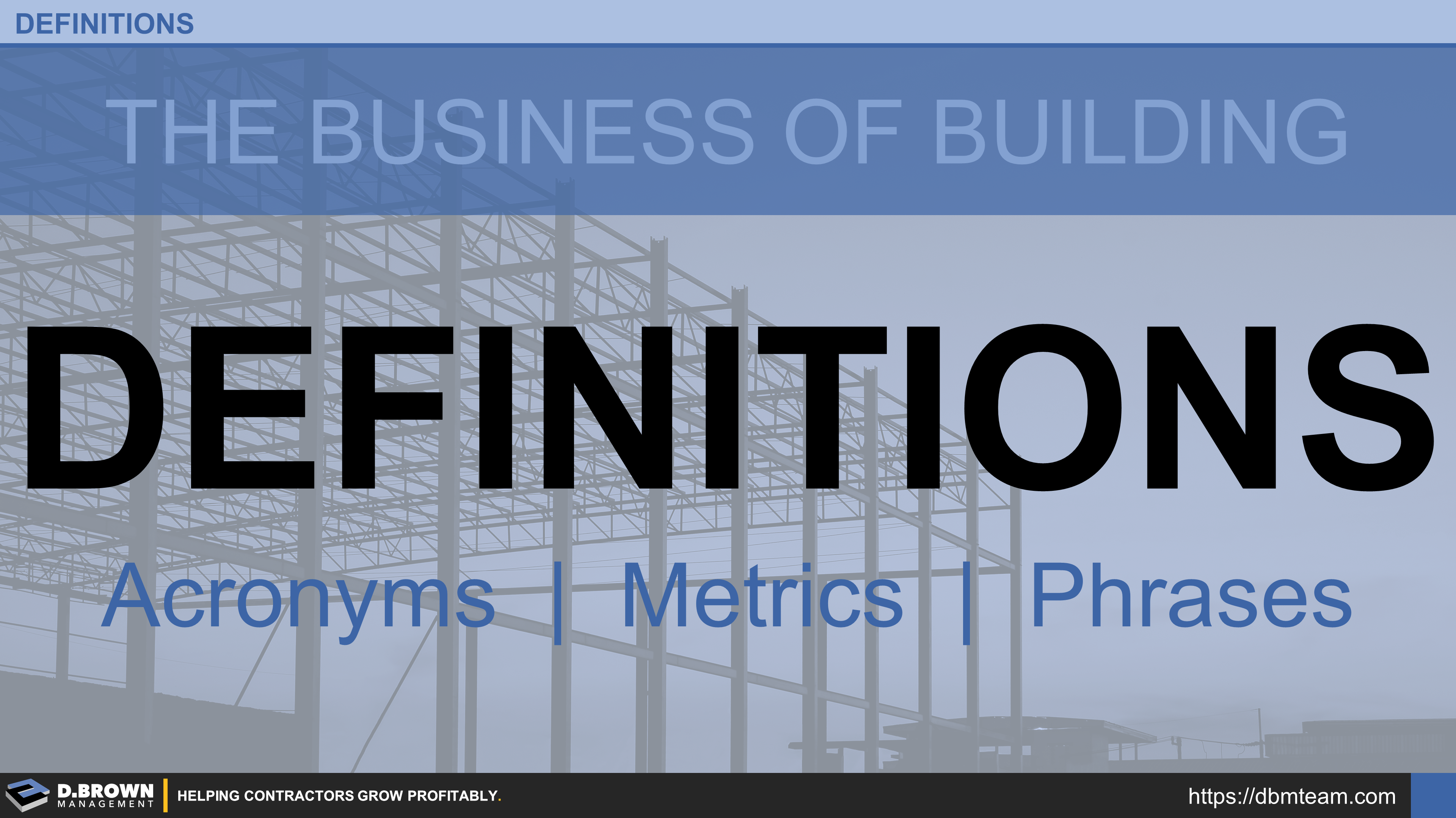 • Some have multiple definitions and we are defining them more specifically for use in a growing contractor.