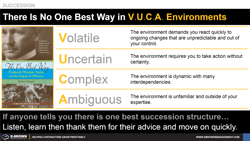 As systems become more complex (or V.U.C.A.), such as operating a company or succession planning, there is not a single “One Best Way” that will work in all situations.