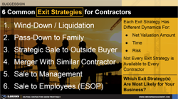 Contractor Exit Strategy 4 of 6: Merging with a contractor that has a complementary market position and management team can be both a great exit strategy as well as an effective growth strategy.